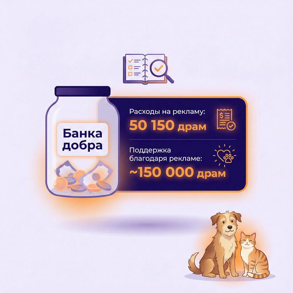 Благодаря рекламе проект получил поддержку примерно на 150 000 драм. То есть реклама была не "ради охватов", а как рабочий инструмент, который привел пожертвования.