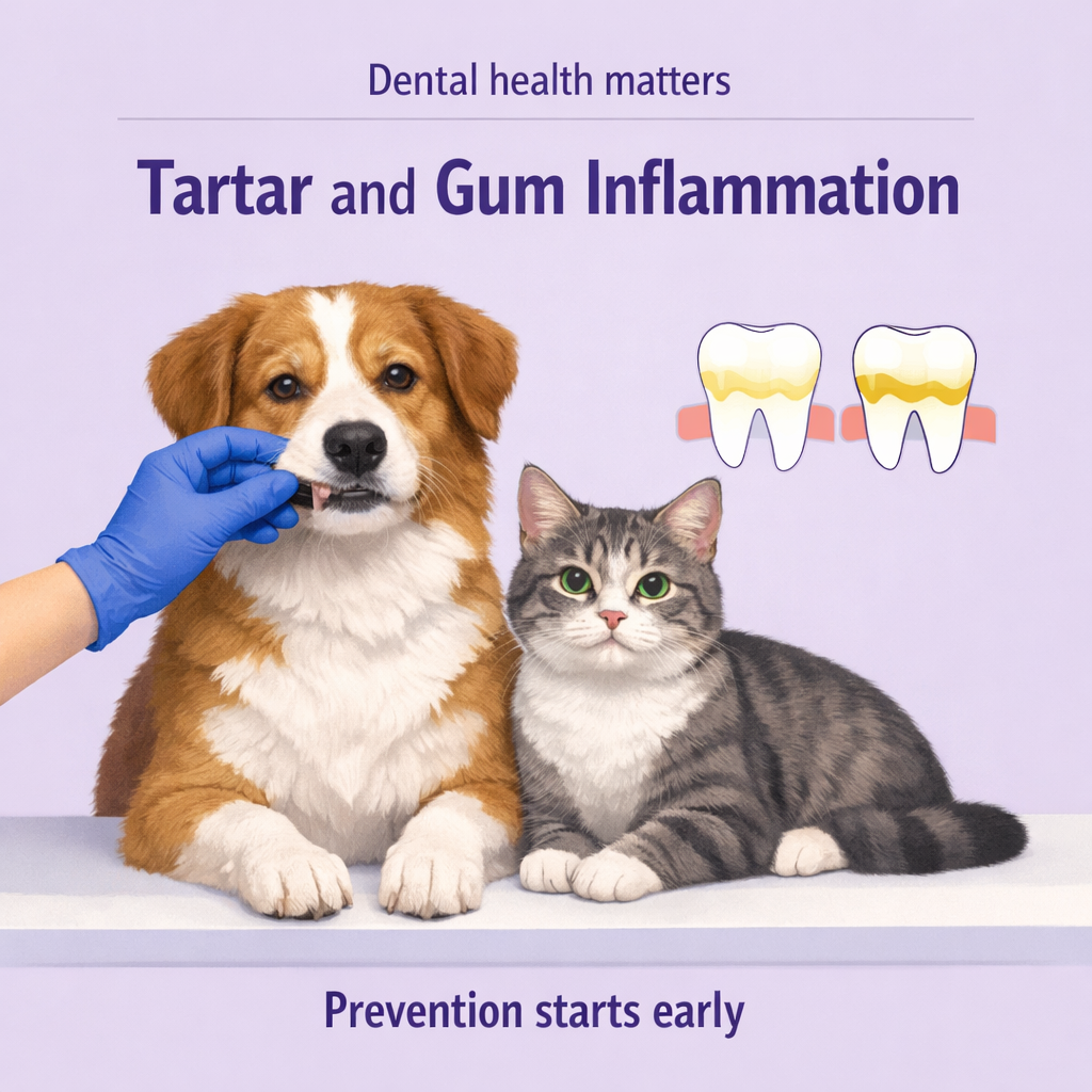 Based on our clinical practice, around 65–70% of dogs and cats over the age of three come to appointments with noticeable tartar buildup. In every second case, there are signs of gingivitis, even when the visit is scheduled for something routine, such as vaccination.
