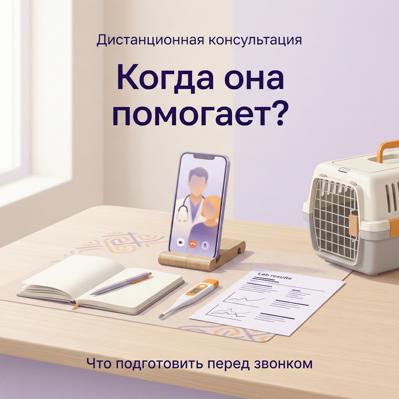 С помощью дистанционного приема удобно разбирать результаты анализов, схему приема лекарств, вопросы питания, ухода после процедур, подготовки к прививкам, подбора защиты от паразитов, а также проблемы поведения и адаптации.