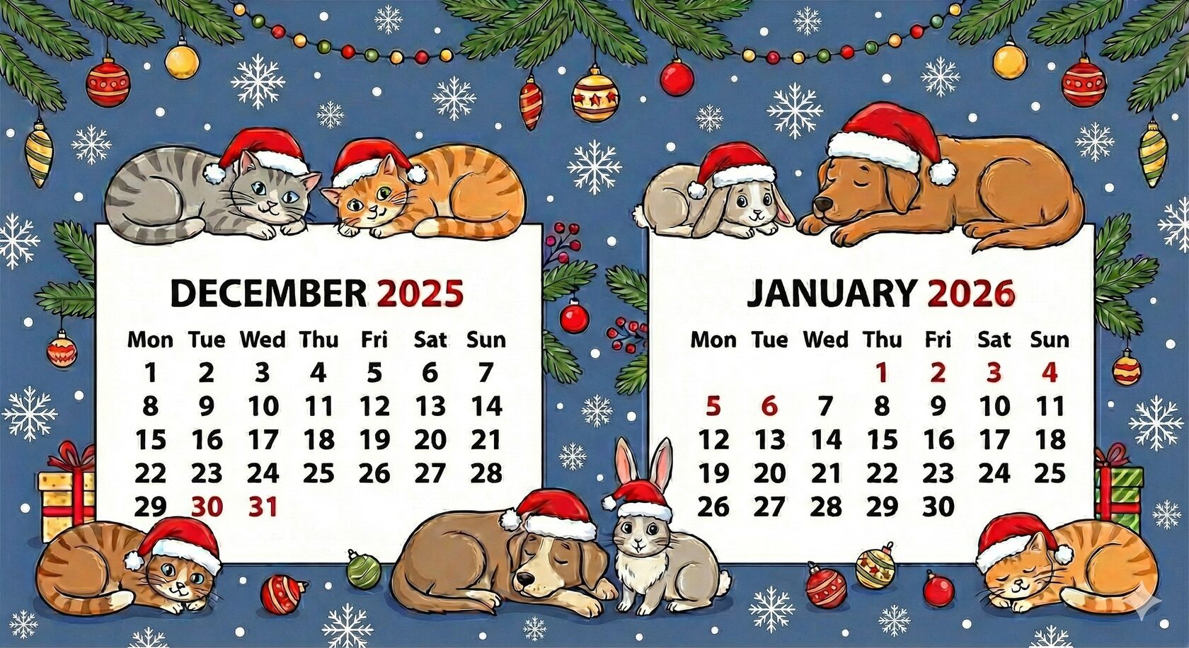 Եթե Ձեր կենդանուն անհրաժեշտ լինի անասնաբուժական օգնություն դեկտեմբերի 30-ից մինչև հունվարի 6-ը, խորհուրդ ենք տալիս չհետաձգել և գնալ Երևան՝ այն կլինիկաները, որոնք կաշխատեն այդ օրերին։